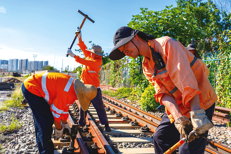 “暑运期间,南翔站列车编组、解编作业繁忙,给到我们工务养修道岔和线路设备的天窗时间也比较紧张,今天这会儿只能给60分钟。”上海工务段南翔线路车间南翔道岔维修工区青年工长刘旗旗擦了把汗,“为了用好这宝贵的天窗时间,车间动足了脑筋,统筹‘一盘棋’,组织沿线所属工区‘集中力量办大事’,今天就有机械化、动车运用所、线路维修三个工区来助阵,这可帮了我们大忙了!”现场的每一个作业小组都干得热火朝天,却又有条不紊,因为每组都至少有一名对该项业务熟稔于心的冒尖职工,不仅能带动整体作业效率,也让新手们在“干中学、学中干”,更快掌握单项作业的技巧。