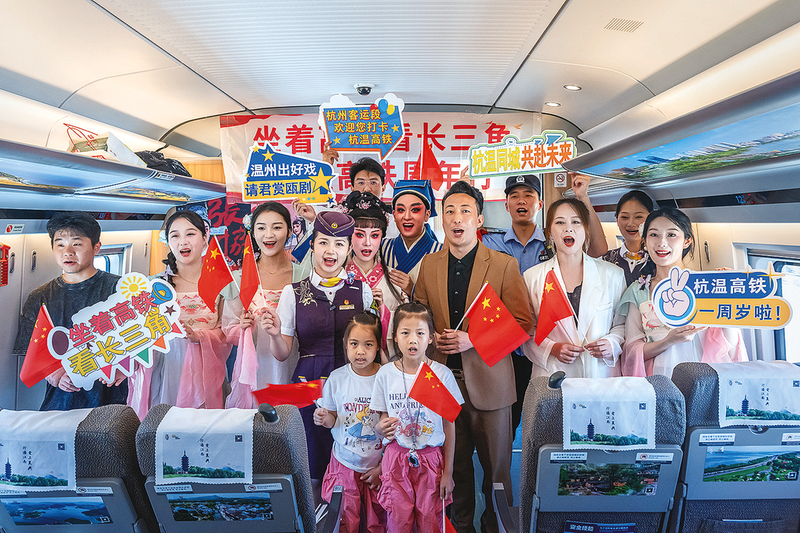 9月6日,在由杭州客运段值乘的G8962次列车上,集团公司与温州市文旅部门携手开展“坐着高铁看长三角,杭温高铁周年行”主题活动,共庆杭温高铁开通运营一周年。