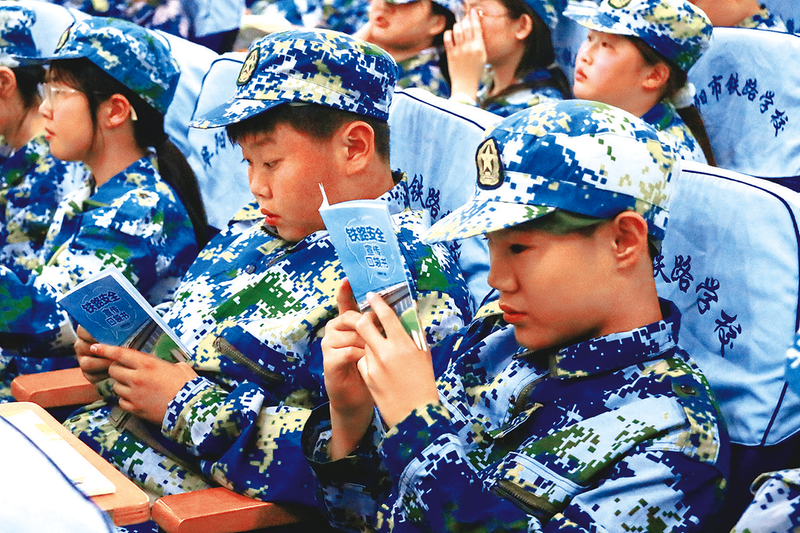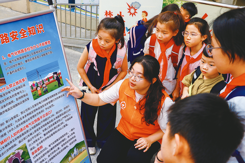 图②为小学生在翻阅铁路安全宣传口袋书。 (通讯员 何硕 摄)