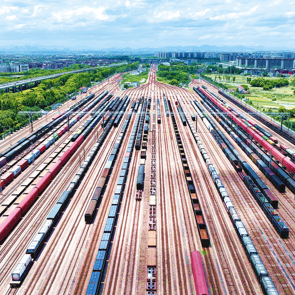 为加速车流运转,乔司站依托综合自动化SAM系统等软件构建的智慧管理体系,通过人机协同,实现运输效率新突破。SAM系统在功能完善性、作业安全性、管理科学性等方面具有显著优势,同时,其智能化、可视化和自动化功能,可帮助生产人员精准掌握车流动态,有效防控作业安全,为保障包括中欧班列在内的各类列车高效、安全作业提供了有力支撑。图为在SAM系统运作下的乔司站编组场。