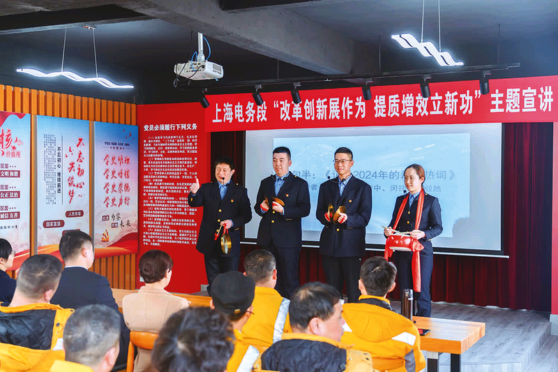 “线”上,“追光”宣讲小分队以相声、情景剧、器乐表演等形式巡回16个车间。“参与创作情景剧《古今对话》,让我对铁路发展成就有了更感性的认识,用职工喜欢的方式讲故事,特别有意义。”宣讲小分队队员杨洋表示,“科长在线讲”通过公众号直播,每期2位科长解读目标重点,单场点赞破万。