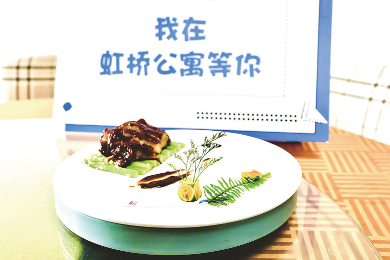上海房建公寓段虹桥行车公寓食堂内香气扑鼻,公寓管理员陆夏滢正热情招呼前来用餐的乘务员,向大家介绍食堂最新推出的系列美食。