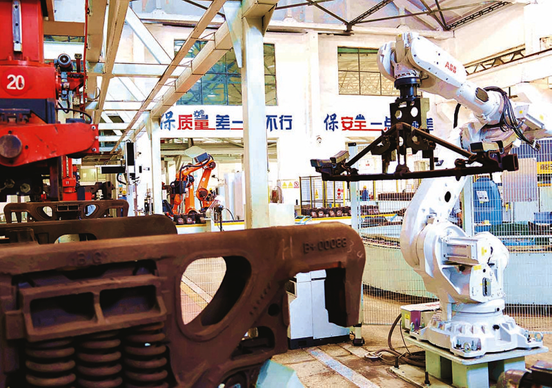 “以往人工操作时,需要专人操控平衡吊,不仅耗时费力,还存在安全风险。”班组工长赵新介绍,“双胞胎”机器人可将单个转向架的制动梁分解时间优化至1分40秒,组装时间优化至2分20秒,作业节奏更贴合转向架悬挂线的生产需求,同时有效降低了劳动强度,为作业者提供了更安全的保障,作业环境也得到显著改善,进一步推动了生产效率与检修质量的双提升。