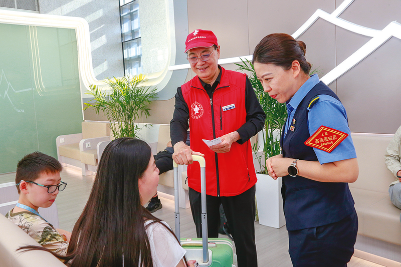 “新机制”焕发“绚彩途” 暑运首日的人潮中,九旬老人颤巍巍的身影牵动了裴惠丽的目光。她忍着脚踝处旧伤快步上前,接过大娘沉甸甸的行李。“闺女在上海,没法送我,可她说了,看见‘红马甲’就能顺利回家!”老人眼底的笑意,让原本脚踝带伤、萌生退意的裴惠丽瞬间泪涌。正是这种滚烫的信任,坚定了“红”与“蓝”的联建之路、融合之旅。
