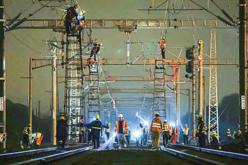 当天晚上9点,百余名施工及配合人员冒雨准时在宁启线K6及K8通道门外集结。22点17分,随着封锁和停电命令的陆续下达,人员迅速携带工器具奔赴各作业点位,一场与时间赛跑的施工作业随即展开。
