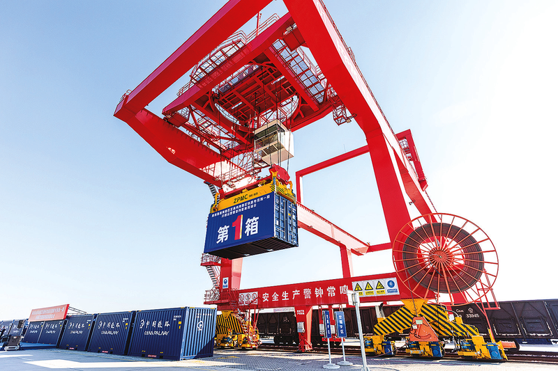 11月19日,由东华地铁公司南京地铁公司代建的南通港通海港区至通州湾港区铁路专用线一期工程正式开通运营,并举行了首列首装现场会。南通港通海铁路全长约24.48公里,是国家“推动长江干线港口铁水联运设施联通行动计划”的14条重点铁路项目之一。该工程的顺利开通运营将进一步深化内外协同,加速构建“公铁水”与“江海河”无缝衔接的多式联运综合运输体系,为南通现代综合交通体系建设与长三角港口一体化发展贡献更坚实的港口力量。图为专用线首趟列车第一个集装箱装车场景。