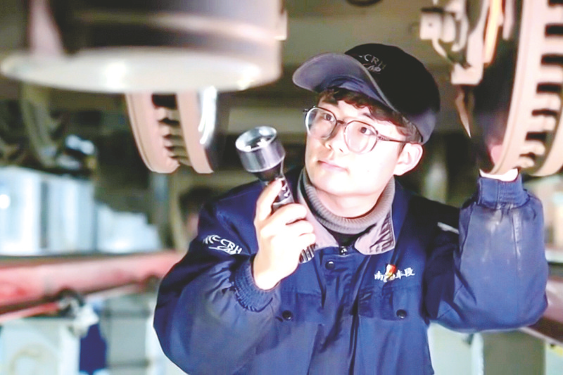 上午,我们临修班组迎来一个“大活”——更换动车组的轮对。这可是个体力加技术的精细活儿,巨大的转向架被顶升起来,我和工友们配合着拆下故障轮对,再把新轮对精准地推进去。拧紧螺栓、测量数据……每个环节都必须严谨,容不得半点马虎。当最后一道工序完成,新的车轮稳稳落地时,老师傅拍了拍我的肩:“小伙子手越来越稳了。”手上沾满了油污,但心里特别踏实。