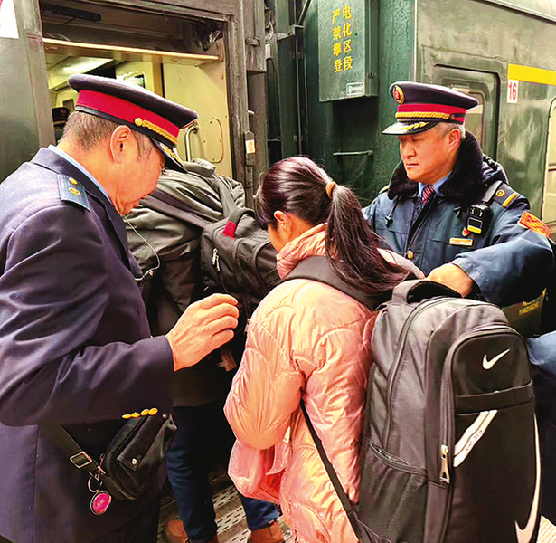 今年春运结束后,他就要退休了。春运期间,他还主动报名帮班。他说:“这是我在岗位上奋斗的最后一个春运,也是我为铁路奉献的最后时光,我将始终以党员的标准严格要求自己,坚持站好最后一班岗,守护好旅客的春运旅途。”